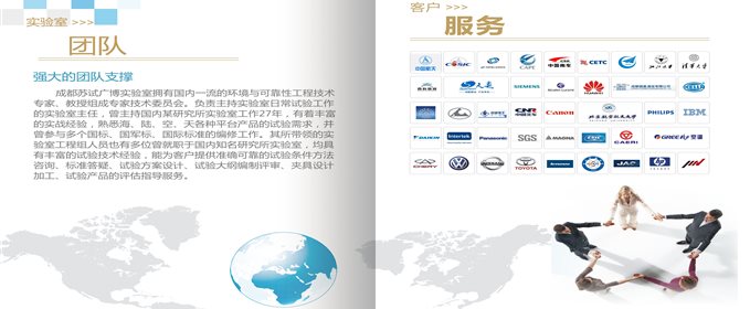 成都苏试广博实验室拥有国内一流的环境与可靠性工程技术专家、教授组成专家技术委员会。负责主持实验室日常试验工作的实验室主任,曾主持国内某研究所实验室工作27年,有着丰富的实战经验,熟悉海、陆、空、天各种平台产品的试验需求,并曾参与多个国标、国军标、国际标准的编修工作。其所带领的实验室工程组人员也有多位曾就职于国内知名研究所实验室,均具有丰富的试验技术经验,能为客户提供准确可靠的试验条件方法咨询、标准答疑、试验方案设计、试验大纲编制评审、夹具设计加工、试验产品的评估指导服务。