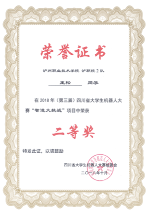 我们学生获2018 年(第三届)四川省大学生机器人大赛二等奖
