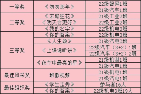 最后经过评委们严谨、公正的打分,本次活动的最终排名如下: