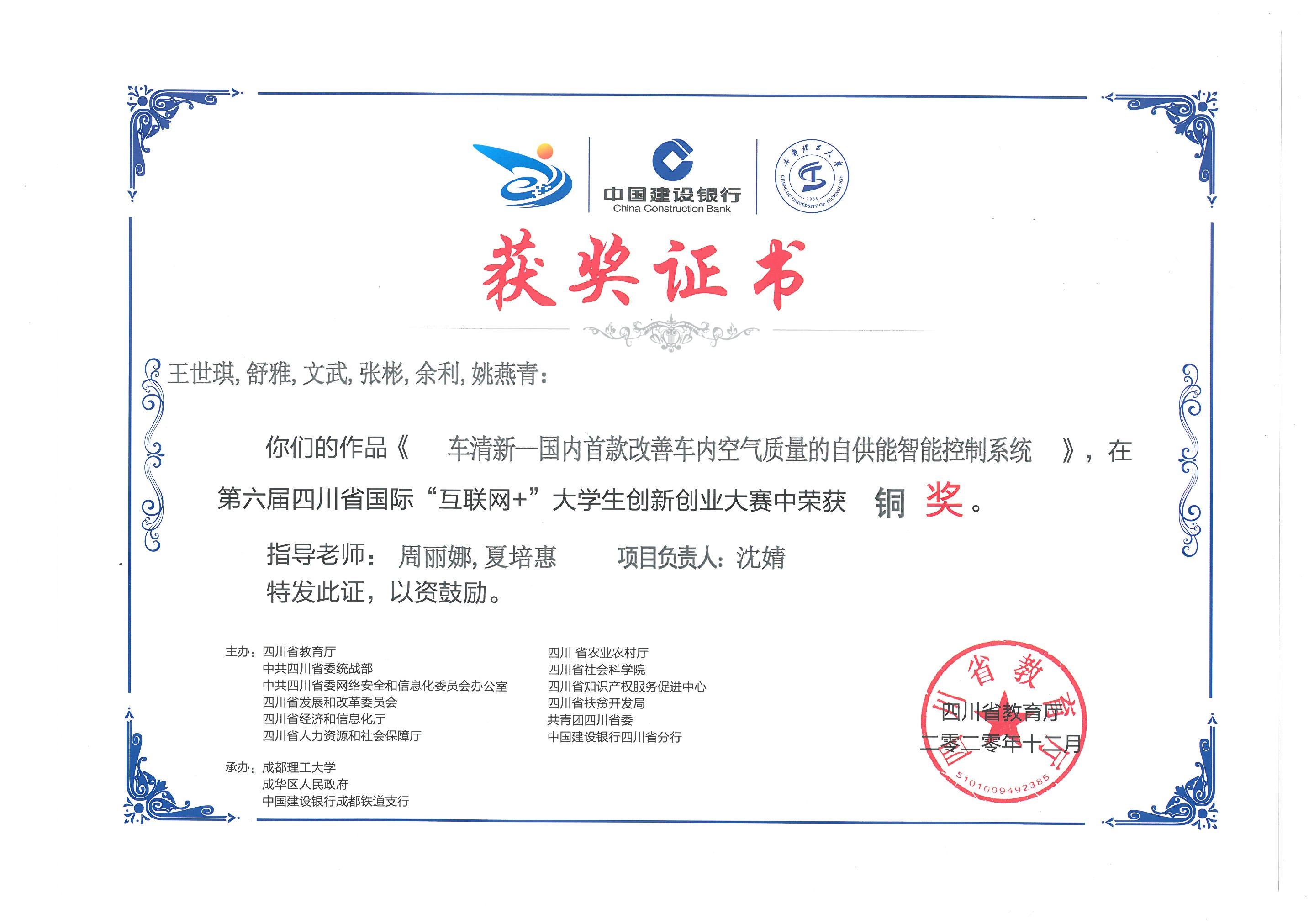 2020年第六届四川省国际互联网+大学生创新创业大赛铜奖