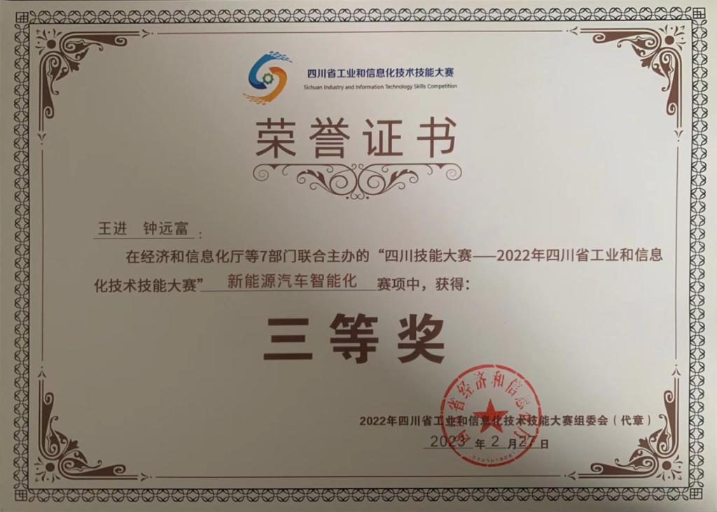 四川技能大赛--2022年四川省工业和信息化技术技能大赛(新能源汽车智能化)(三等奖)
