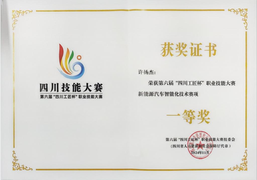 “四川工匠杯”职业技能大赛新能源汽车智能化技术赛项一等奖