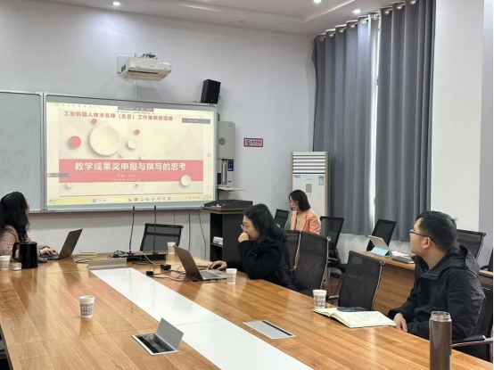 张丹博士以《教学成果奖申报与撰写的思考》为主题,首先对前期国家教学成果奖的获奖情况进行分析,然后分析展示了教学成果奖的几个要素,并对教学成果奖的申报进行系统培训。最后,张丹博士结合学院工业机器人技术专业的现有成果,与球盟会体育领导班子进行交流,对今后专业建设提出了建议,为后续工作指明了方向。