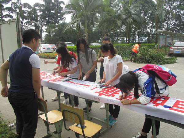 两天的宣传活动中,学生们通过摆放禁烟宣传海报宣传吸烟及二手烟可能会导致肺癌、心脑血管疾病、喉癌等疾病,向路过的师生介绍相关禁烟条例和戒烟知识,让同学们深入了解吸烟的危害。号召同学们远离香烟、珍爱生命,培养健康的生活方式,为营造良好的无烟校园尽自己的一份力。并发动同学们在“一时的快乐,永恒的伤痛——请勿吸烟”的横幅上签字,以表禁烟决心!
