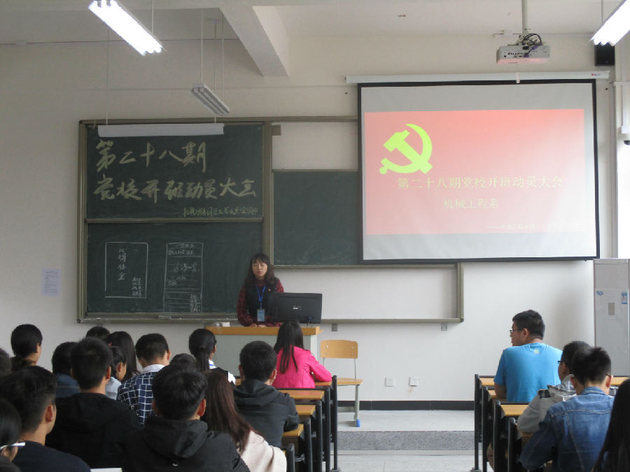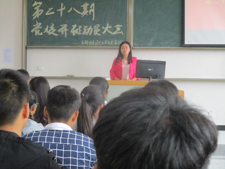 本次大会由党总支代理副书记陈小怡主持。首先,陈杨对28期入党积极分子进行了点名。随后,陈书记对第28期入党积极分子给予了肯定,并希望他们从现在开始要以党员的纪律严格要求自己,拥护党、热爱党,在同学当中树立良好形象,在各项活动中起到模范带头作用。最后,系部学生会主席周海宁和学生代表王锐、组织部部长熊维艺依次发表了讲话。其中,系部组织部部长熊维艺强调了上党课的性质,党课的纪律,以及写心得体会的格式等问题。