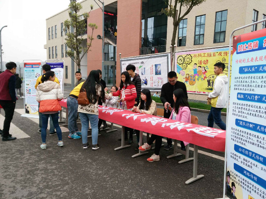 为增强学生对传销、诈骗的防范意识,322-24日,机械工程系团总支学生会男女生部、纪检部联合举办了“反传销,防诈骗”宣传活动。