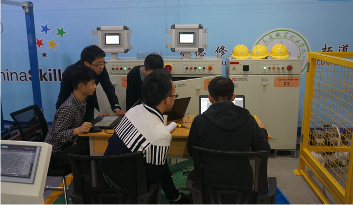 工业机器人技术应用是集PLC、数据通信、工业机器人操作、AGV自动小车、码垛机器人、CCD影像识别等多种知识与技能于一体的综合性比赛,这些内容对于教师与学生都是极大的挑战,师生们4月4号即到达成都备战集训。训练过程中,师生团结一心、克服各种困难,以争取取得好成绩。