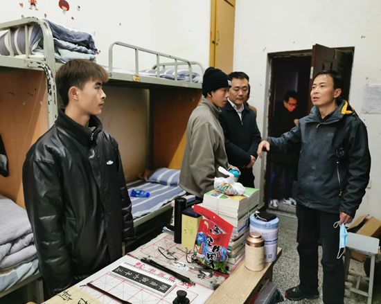 为深入贯彻落实学校安全稳定工作推动会议的精神,切实做好安全稳定工作,进一步了解学生的思想动态,切实关心关怀学生疫情常态化学习生活情况,2月19日下午,学校党委常委、副院长梁杰深入走访宿舍并亲切看望返校学生。