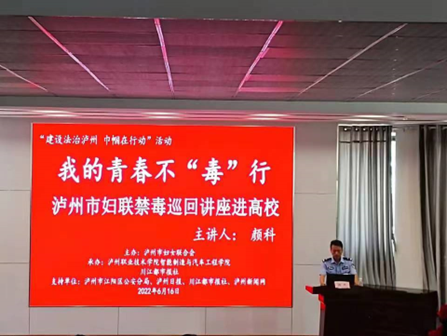 在第35个“国际禁毒日”即将来临之际,由泸州市妇女联合会主办,球盟会官方网站、川江都市报联合承办,泸州市江阳区公安分局、泸州日报社、泸州新闻网大力支持的“我的青春不‘毒’行”——泸州市妇联禁毒巡回讲座在球盟会最新官网萧秋厅成功举行。讲座特邀“全国优秀人民警察”、泸州市江阳区公安分局禁毒缉毒大队副大队长颜科主讲,学院后勤保卫和球盟会官方网站300余名师生代表参加。