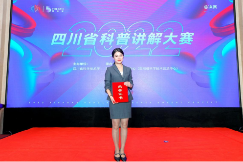 2022年四川省科普讲解大赛决赛分为半决赛、总决赛两个环节,在半决赛中我们教师王秀婷以小组第一名的好成绩入围总决赛,半决赛全省共有31支代表队(71个单位)的127名选手参加,共有20名优秀选手突出重围,进入总决赛。最终,我们教师荣获总决赛二等奖。