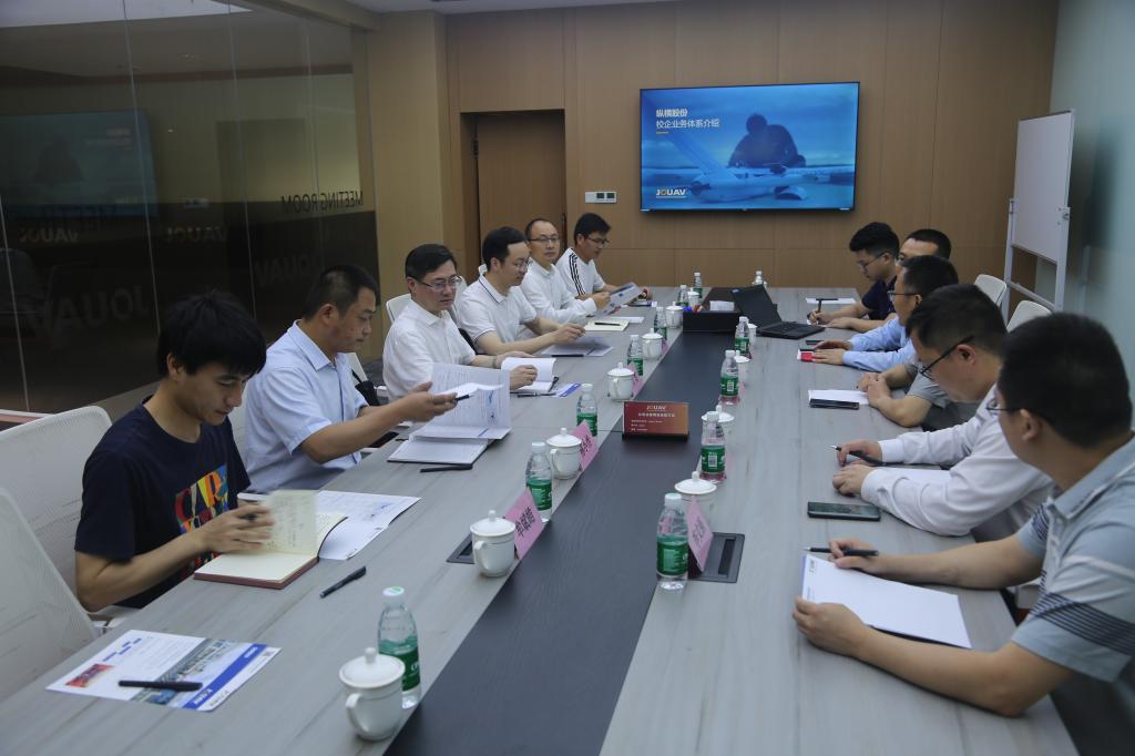 在纵横公司无人机学院院长杨锐陪同下,何杰书记一行深入参观了纵横股份鹏飞科技园的工业无人机展厅、生产车间、复材车间以及各系列产品的组装线。实地了解了公司工业无人机产品的特点、系列、应用领域以及先进的生产工艺,为学校的专业建设和人才培养提供了宝贵的行业参考。