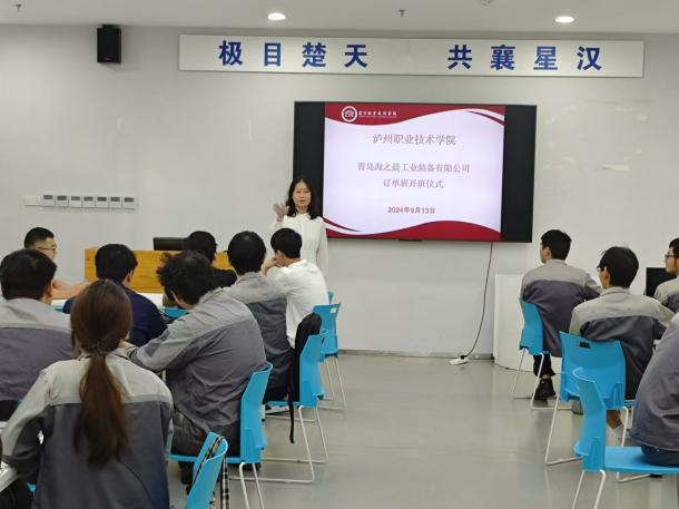 万昭元代表学院对海之晨公司一行的到来表示热烈欢迎,强调了校企合作对于我们人才培养的重要性。周丽娜对订单班学生提出三点期望,一是要尽快适应角色的转换,按照企业的规章制度严格要求自己;二是珍惜学习机会,积极学习新知识,掌握新技能;三是懂得感恩,感恩学校和企业提供优秀的平台。