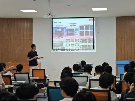 宣讲会上,企业职业教育市场经理谭曌围绕企业人才战略、核心业务布局、产业落地案例及产教融合实践展开分享。他详细介绍了公司在机器视觉领域的技术优势与行业地位,并重点解读“海之晨订单班”的培养模式:订单班将采用“校企双导师+岗位实战化”培养机制,为学生定制涵盖工业机器人应用、智能产线设计、机器视觉、图像技术等课程体系,同步配套企业真实项目实训。谭曌强调,入选订单班的学生将获得企业实习岗位,表现优异的学生可以进入“海之晨人才储备库”。